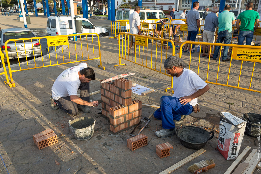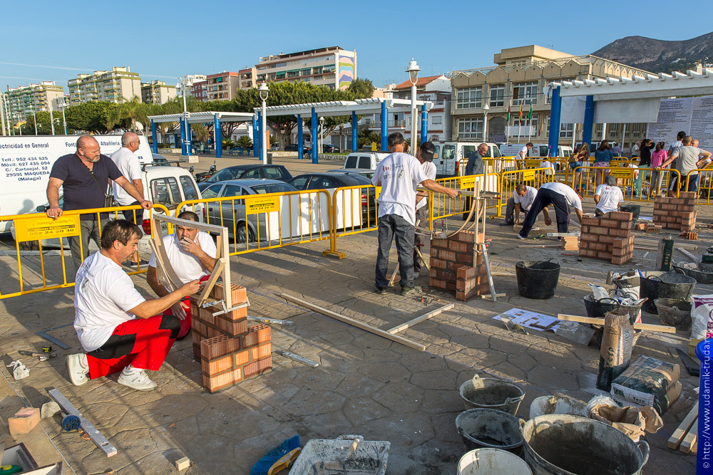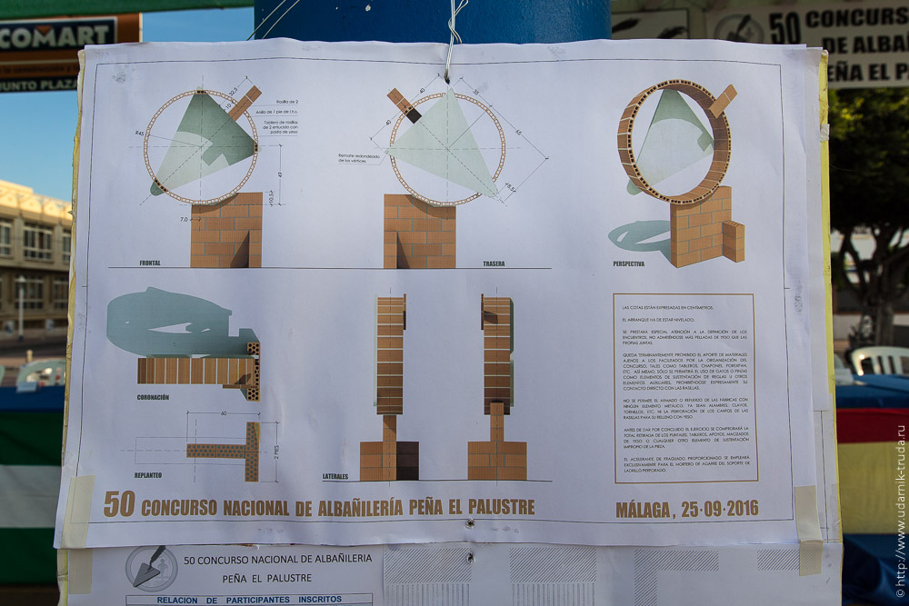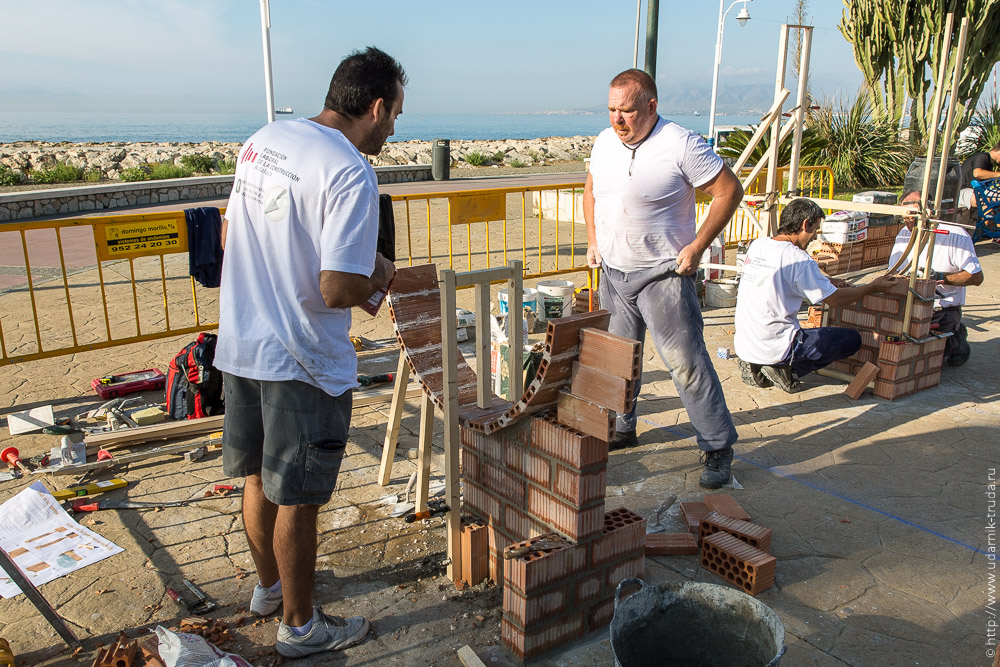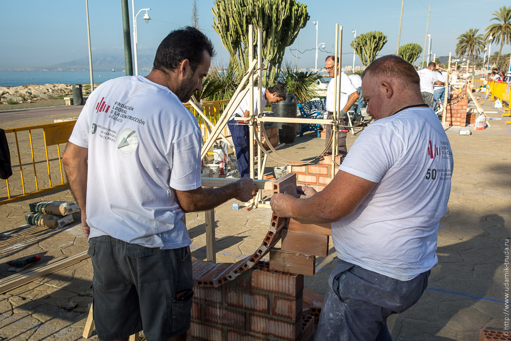 25 сентября в Малаге прошел 50-ый Национальный конкурс строителей (Concurso Nacional de Albanileria), организатором конкурса традиционно выступило общество Pena El Palustre. Рано утром на площади Plaza del Padre Ciganda в El Palo собрались лучшие каменщики Испании, по условиям конкурса они должны были за 4 часа построить из кирпича конструкцию по чертежу. Конструкция каждый год разная, в этом году в честь полувекового юбилея конкурса участники строили эмблему общества Pena El Palustre - мастерок в круге, испанское слово "palustre" именно и означает "мастерок".