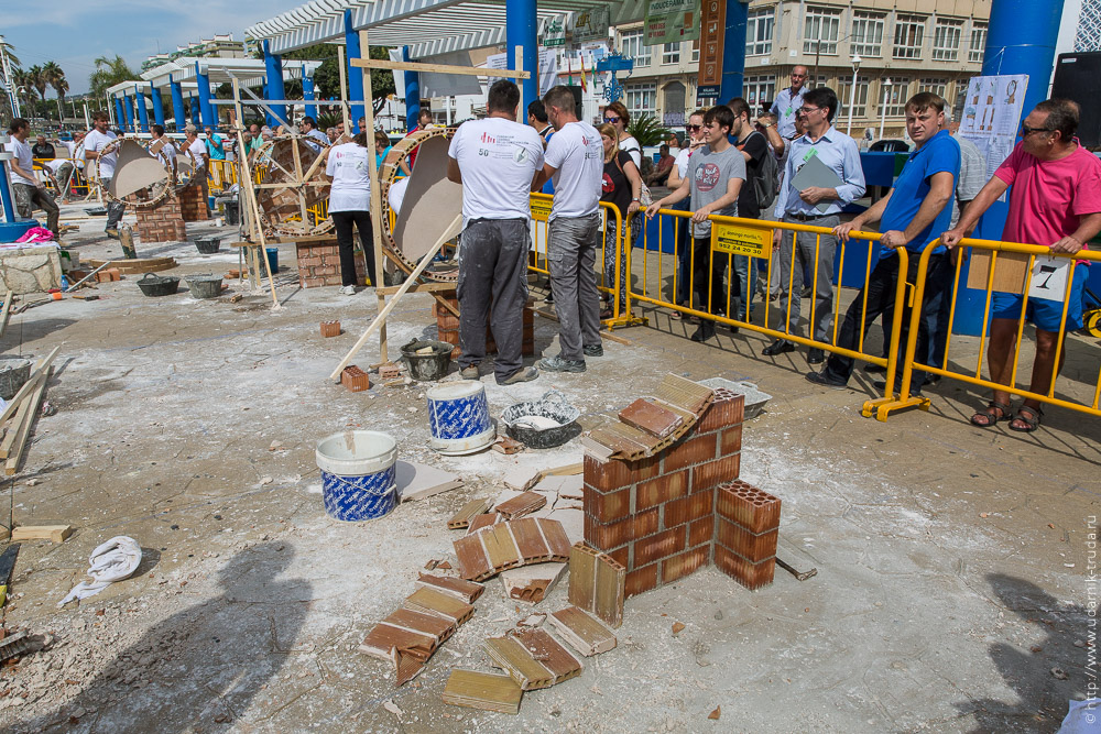 В 8:00 утра 35 квадрилий каменщиков из разных уголков Испании, получив чертежи и материалы, приступили к работе.