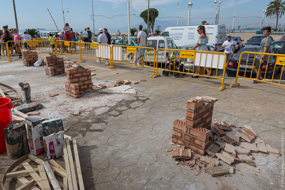 И вот определяются победители - первое место и премию в 6000 евро получает квадрилья №13, братья Natividad del Pozo Galan и Jose Maria del Pozo Galan из городка Fuenlabrada возле Мадрида. Полагаю, что несчастливый номер "13" братьям дали неспроста - братья Pozo Galan являются многократными победителями этого и других строительных конкурсов и, вероятно, что дав им такой номер темные силы пытались помешать братьям взять первое место, но ничего не вышло, первое место все равно досталось им. Награды братьям вручает вездесущий мэр Малаги Франциско де ла Торре.