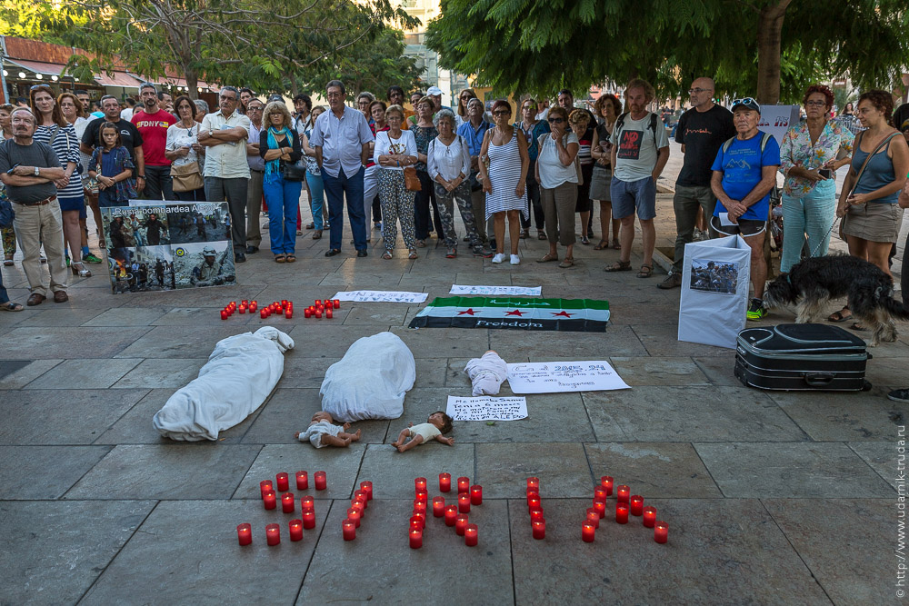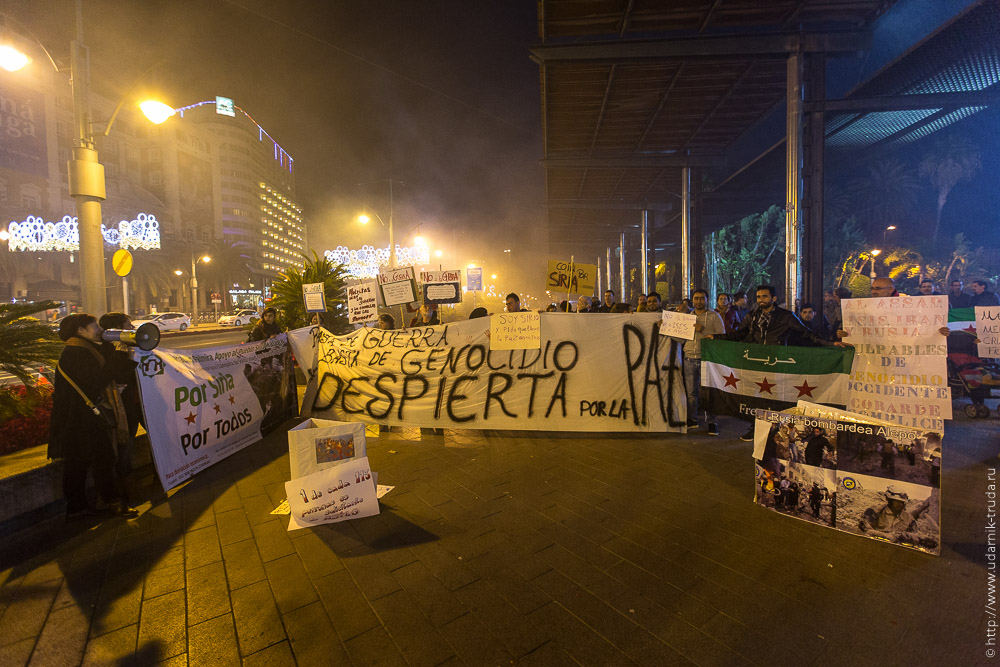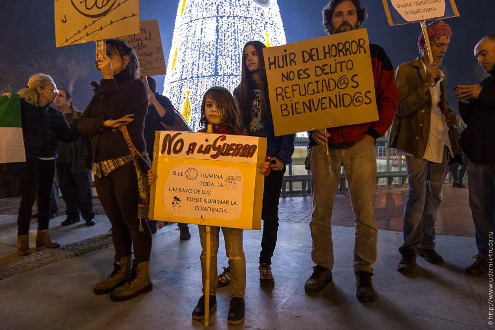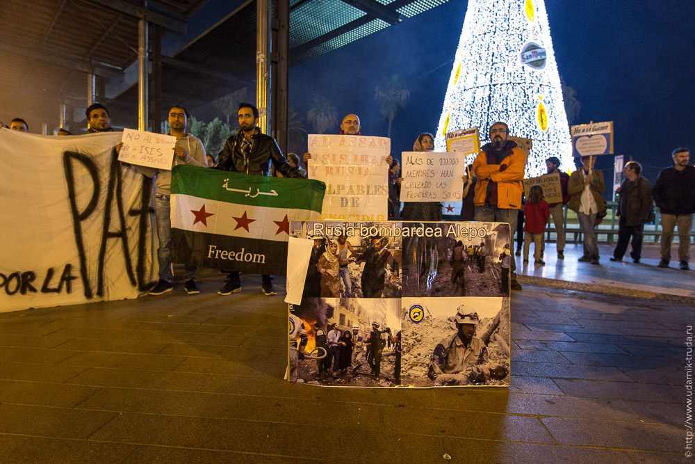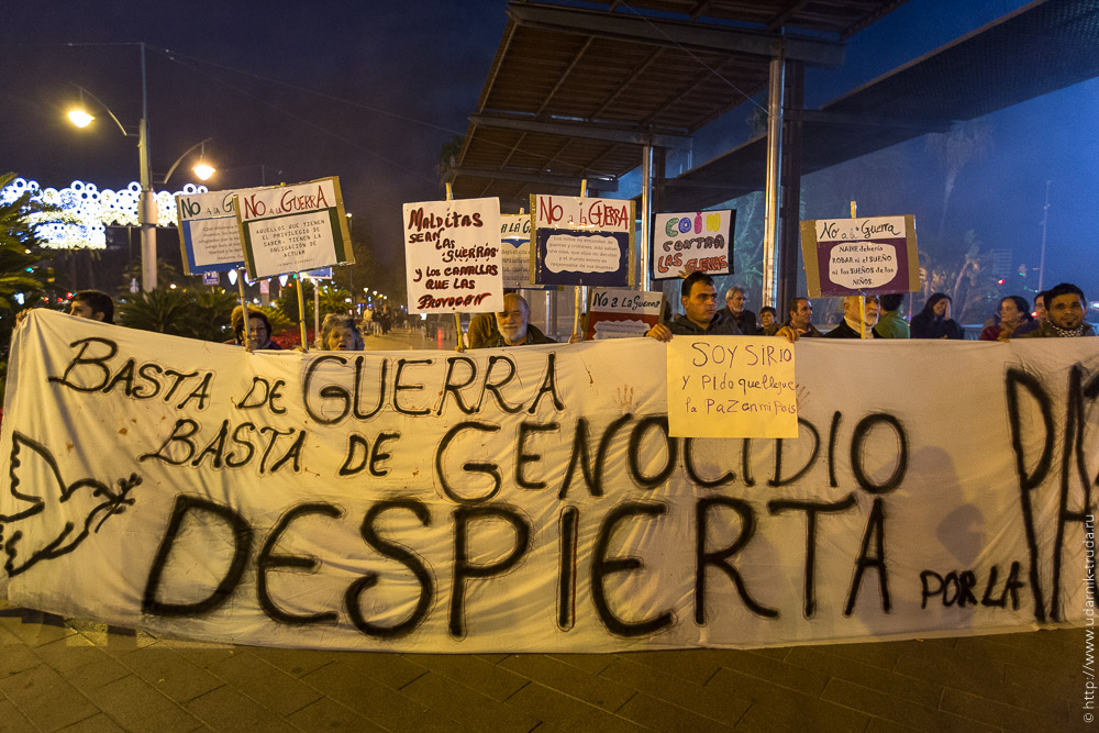 12 ноября в 33 городах Испании прошли митинги против войны в Сирии. В Малаге митингующие собрались в 18:30 на Plaza de la Marina, всего на митинг пришло около 50 человек.