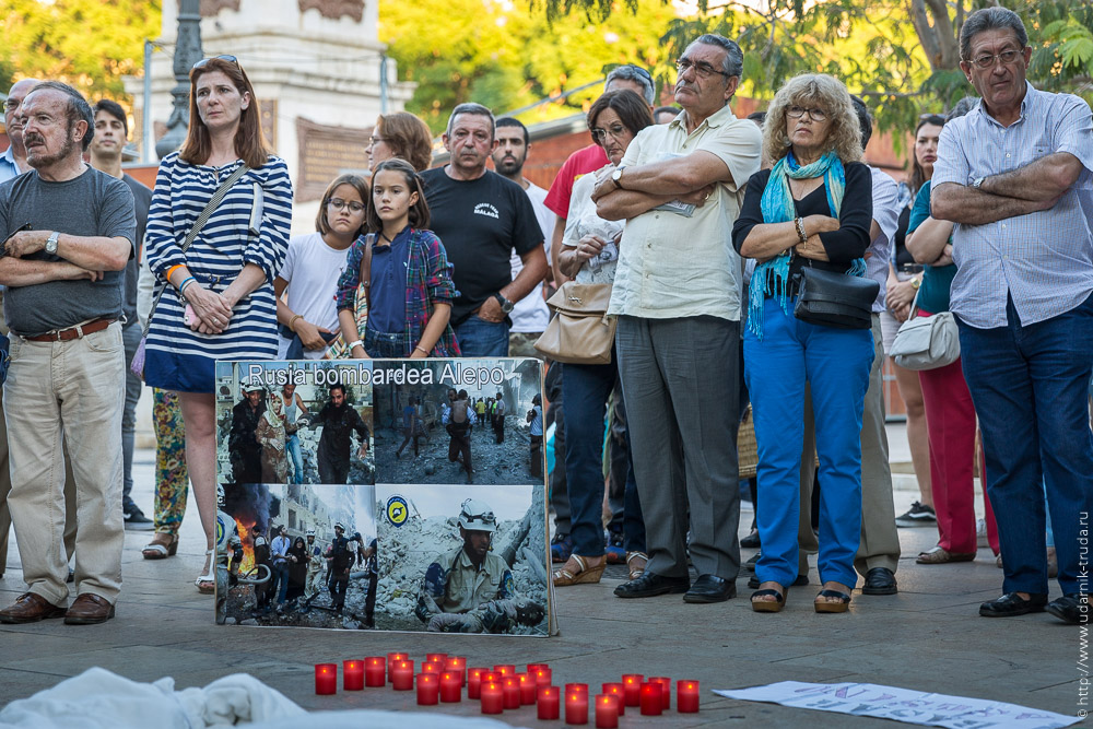 2 октября в Малаге состоялся антироссийский митинг. Всю неделю перед этим МИД РФ по всем своим каналам предупреждал живущих за рубежом россиян о том, что в связи с обострением обстановки в Сирии различные международные организации 30 сентября готовят "Всемирный день гнева и протеста", в рамках которого планируется устраивать провокации против российских граждан. Но, как обычно, МИД РФ слегка ошибся: во-первых "День гнева" прошел не 30 сентября, а 2 октября, а во-вторых единственным российским гражданином, в отношении которого можно было устроить провокацию на этом "Дне", оказался я, больше ни одного россиянина в месте проведения митинга не было. Митинг начался в 19:00 на Plaza de la Merced, всего пришло около 200 человек, из которых однозначными сирийцами были хорошо если десяток митингующих.