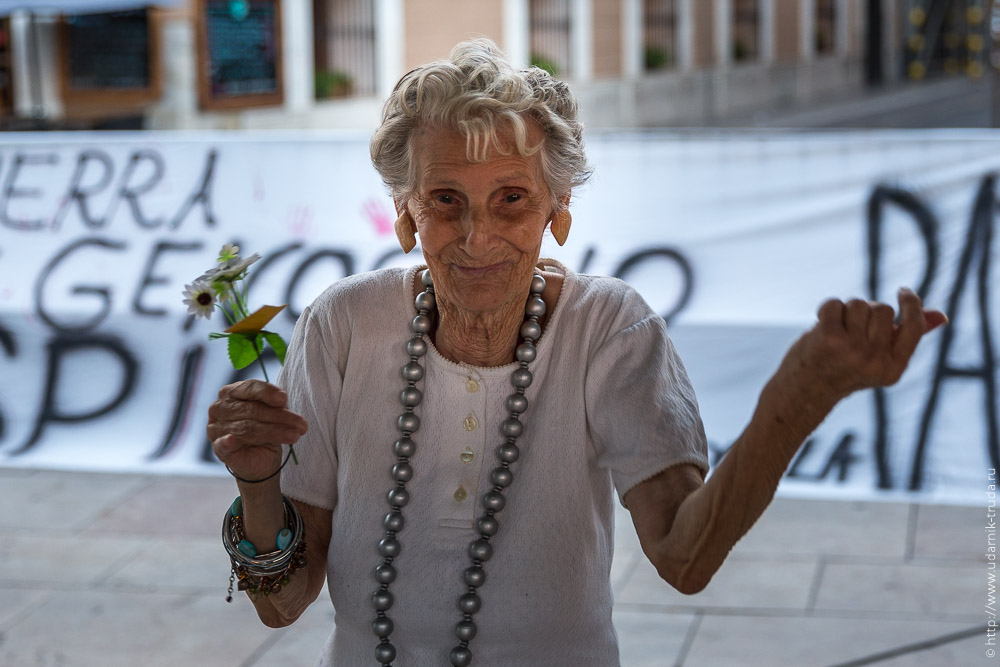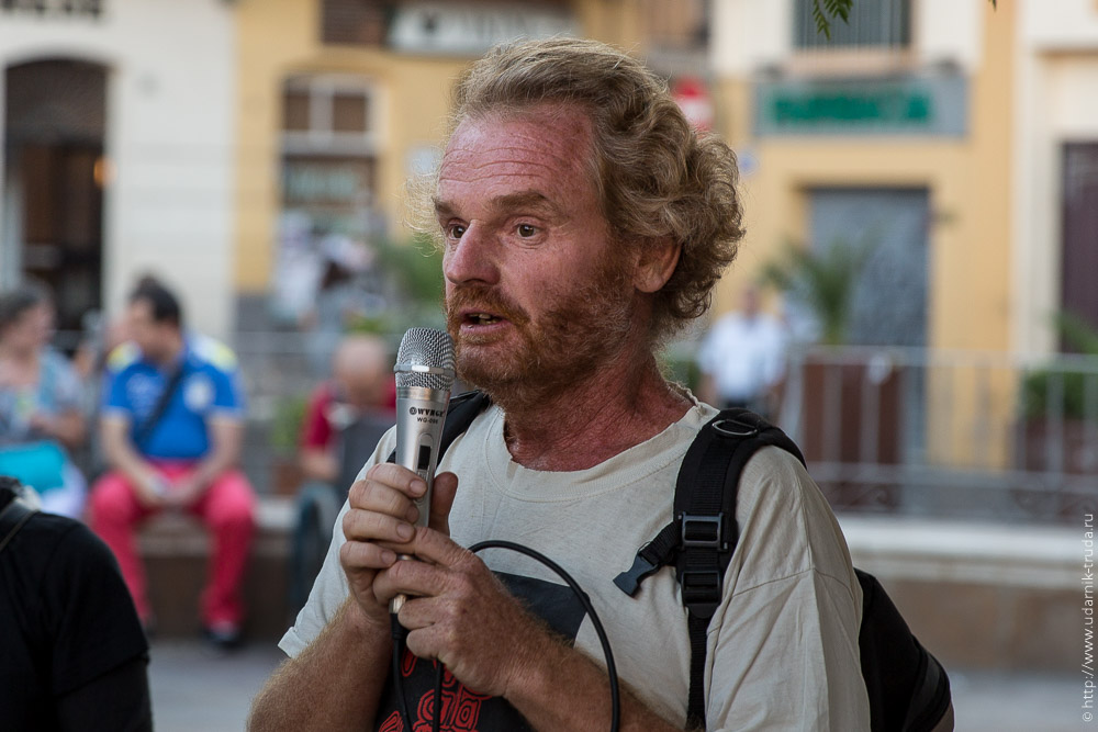 Не успел мэр толком начать выступление, как на балкон кафе прям над его головой вылезли какие-то недовольные с плакатом и мегафоном, и стали кричать, что Конституция Испании провозглашает право на достойное жильё для каждого испанца. На плакатах написано: "Политики! Бездомные существуют!" и "В Малаге 2000 бездомных!". Через минуту бездомных буянов мягко арестовали и митинг продолжился.